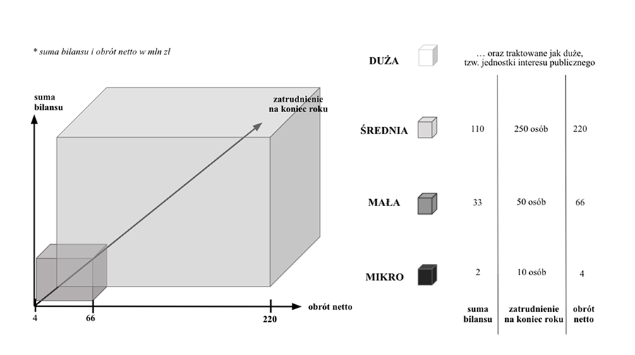 Należy jednak pamiętać, że nie wszystkie obowiązki i uprawnienia dają się przyporządkować wyłącznie do tych kategorii, gdyż ustawa wciąż odwołuje się do specyficznych limitów i kryteriów tzw. jakościowych, takich jak struktura własności, forma prawna, czy rodzaj prowadzonej działalności. Nadal status jednostki nie wynika tylko z jej wielkości określonej sumą aktywów, obrotem i liczbą zatrudnionych.